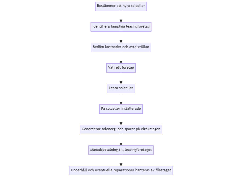 Att hyra solceller innebär att du leasar en solcellsanläggning från ett företag, som äger och underhåller anläggningen. Du betalar en månadsavgift och får i gengäld tillgång till den elektricitet som solcellerna genererar.