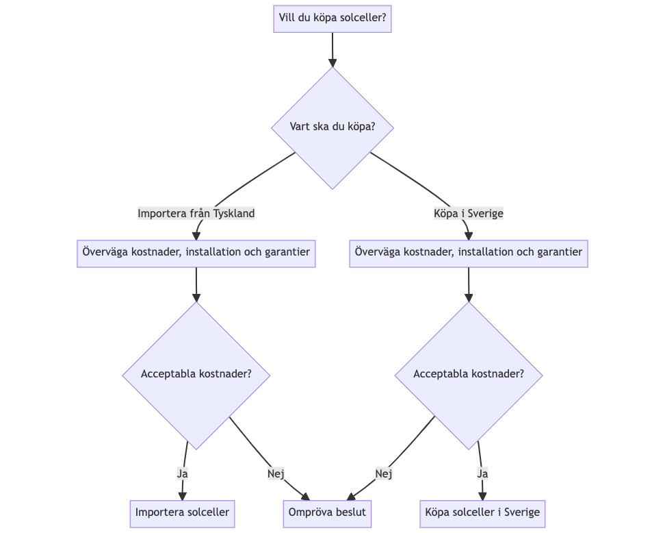 | Garantier och reklamationer | Kan vara krångligare att hantera om panelerna köps från ett annat land. | Alltid inkluderade, ofta lättare att hantera genom ett svenskt företag. |